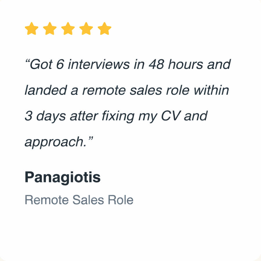 After seeing hundreds of trained closers struggle to land roles despite having the skills, I built the exact systems that actually work — CV frameworks that pass ATS filters, interview scripts that convert, and outreach strategies that get replies.Everything inside PlacedCloser comes from real-world results, not theory. These are the same tools my students use to go from ghosted on applications to getting interviews and job offers faster.