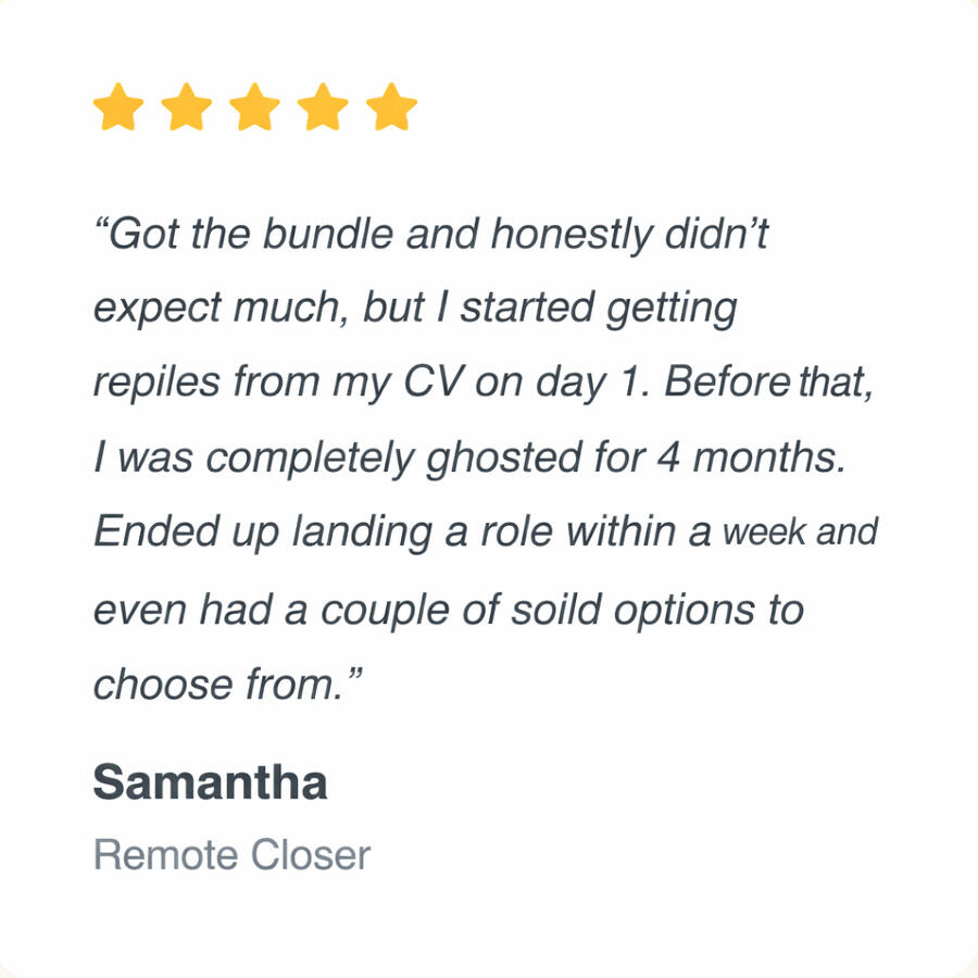 Yes. Everything is specifically tailored for remote sales and remote closing roles, where the hiring process and expectations are very different from traditional sales jobs.
