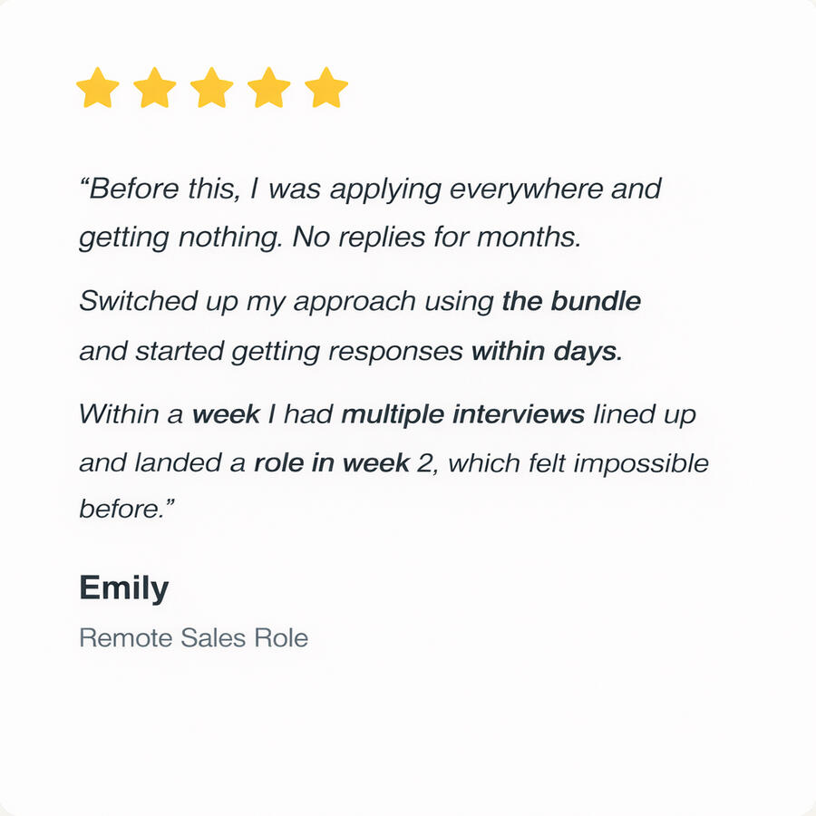After seeing hundreds of trained closers struggle to land roles despite having the skills, I built the exact systems that actually work — CV frameworks that pass ATS filters, interview scripts that convert, and outreach strategies that get replies.Everything inside PlacedCloser comes from real-world results, not theory. These are the same tools my students use to go from ghosted on applications to getting interviews and job offers faster.